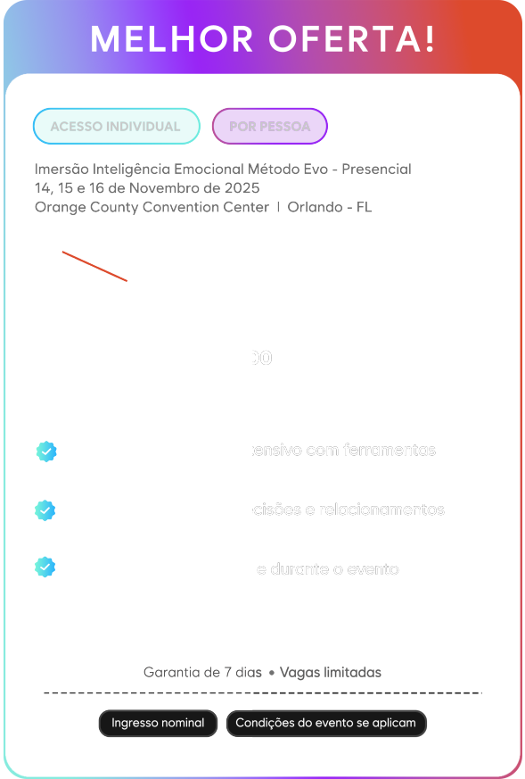 Você vai aprender técnicas para blindar a sua mente contra estímulos negativos externos e identificar suas emoções, não permitindo que dores do passado te impeçam de ter a vida que merece.